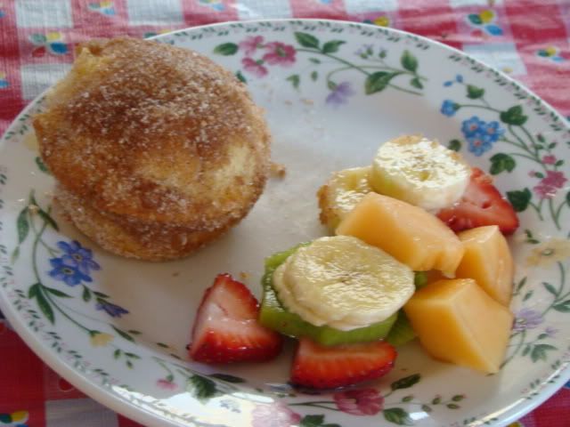 I made her French Breakfast Puffs this morning with some fruit salad on the side. Yum! The girls loved them but didn't finish a whole o...